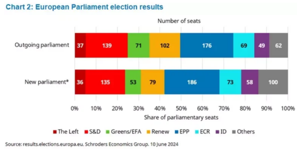 Les résultats préliminaires indiquent que les partis populistes nationalistes de droite ont été les grands vainqueurs des élections de 2024. Le principal bénéficiaire a été le groupe Identité nationaliste et Démocratie (ID), qui devrait voir une augmentation de 18% du nombre de sièges détenus. Les conservateurs et réformistes européens (ECR), qui sont également de droite, ont également enregistré des gains importants, notamment le plus grand parti, le Parti populaire européen (PPE).